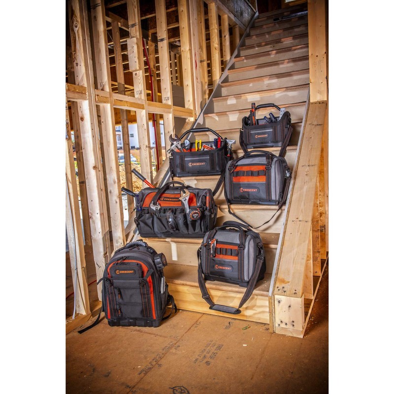 Introducing the Crescent tradesman Closed tool bag. The newly designed sleeves hold the tools in place without losing small bits in the bottom of the pockets. The interior divide splits the bag into two sections to provide increased organization for identifying the right tools for the job. This bag features a hard polypropylene base that provides the durability you need to keep your tools safe and dry. Every zipper on this bag comes with a 3-year guarantee. These bags are built to take the abuse of everyday jobsite use.