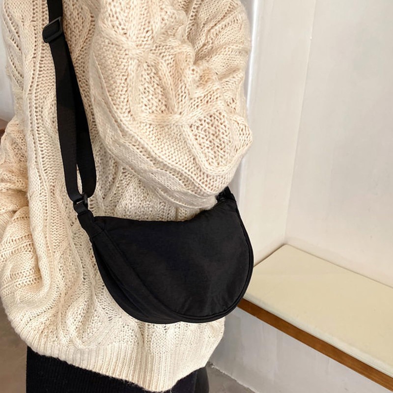 Crescent Bag for Women Men Small Nylon Crossbody Lightweight Shoulder Purse Travel Waist Bag (Black)