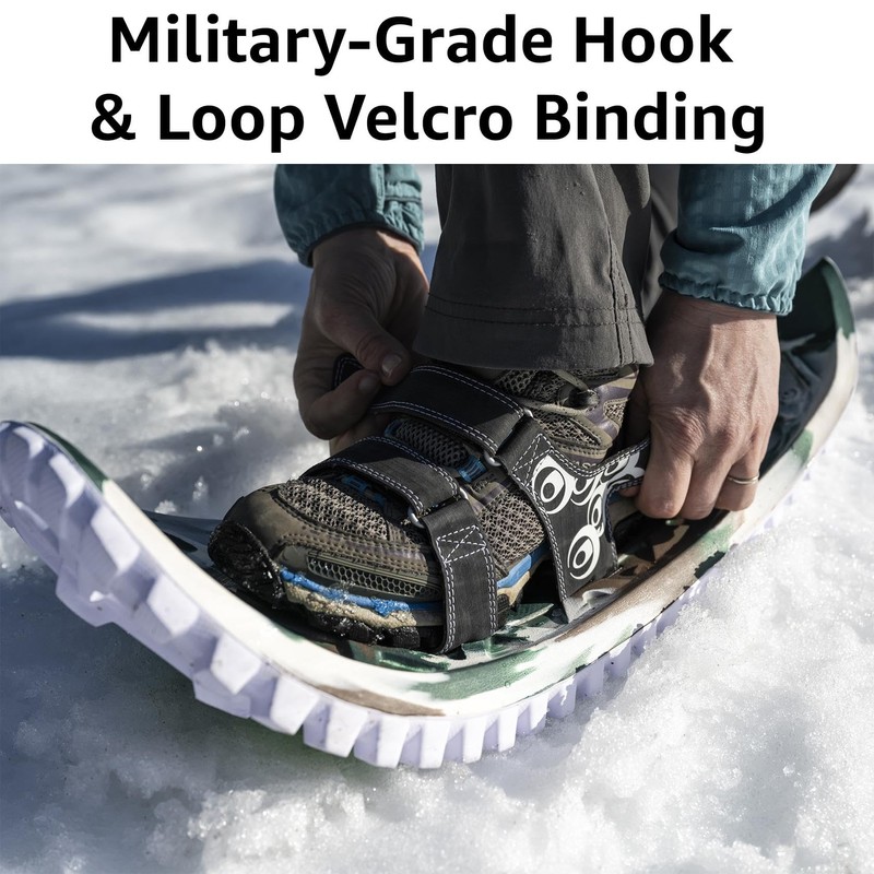 - Easy To Use: These are by far the easiest and most intuitive snowshoes to use. The Secure hook and loop bindings are incredibly intuitive, simple, and stay tight across rolling terrain; 24 x 8 inches
