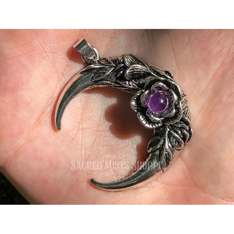 The Crescent Moon and Rose Pendant with Amethyst Crystal is not just a piece of jewelry; it's a symbol of elegance and enchantment. Its unique design and spiritual significance make it a must-have for those who cherish beauty and serenity in their accessories. Add this mesmerizing piece to your collection today and bask in the allure of the moon and the charm of the rose.