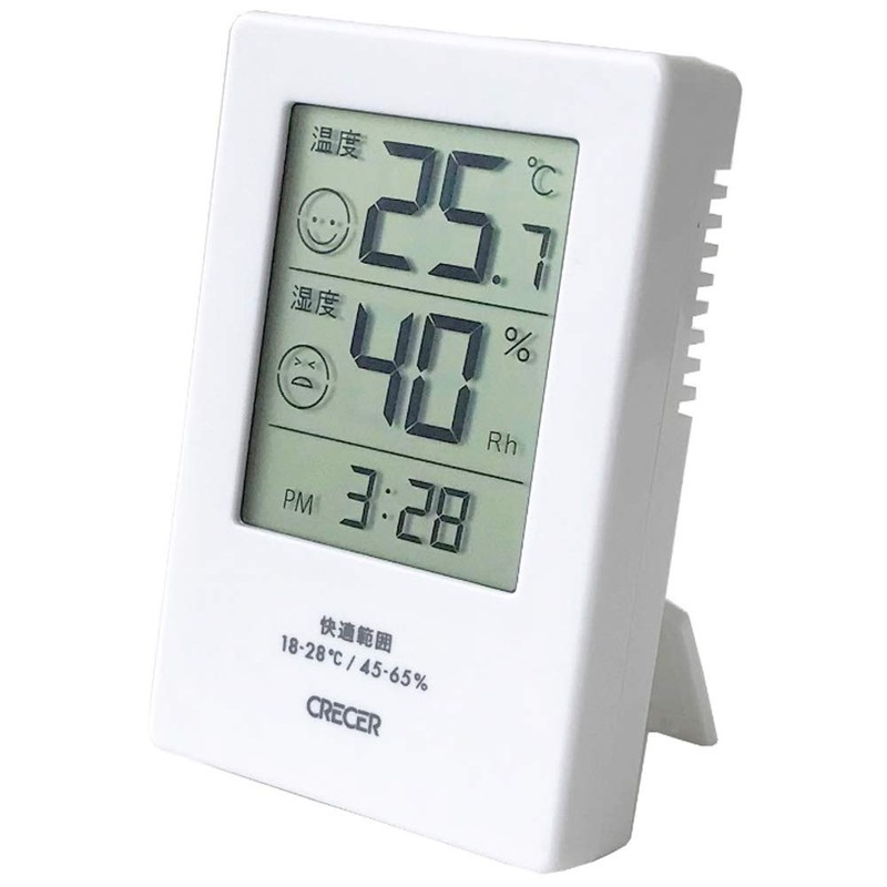 Cresel Thermometer/Hygrometer, Digital Clock Function, Wall Mounted, Tabletop, Stand Included, White, 0.7 x 2.4 x 3.5 inches (1.8 x 6 x 9 cm)