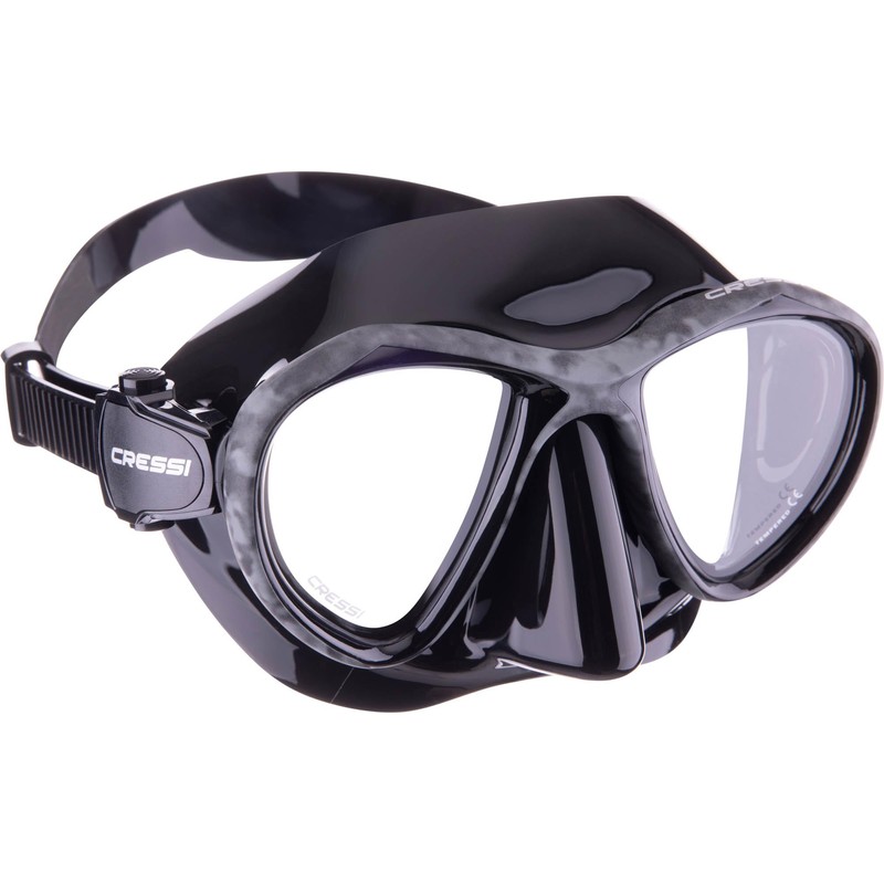 - Máscara de 2 ventanas de bajo volumen adecuada para apnea, pesca submarina y también para buceo.