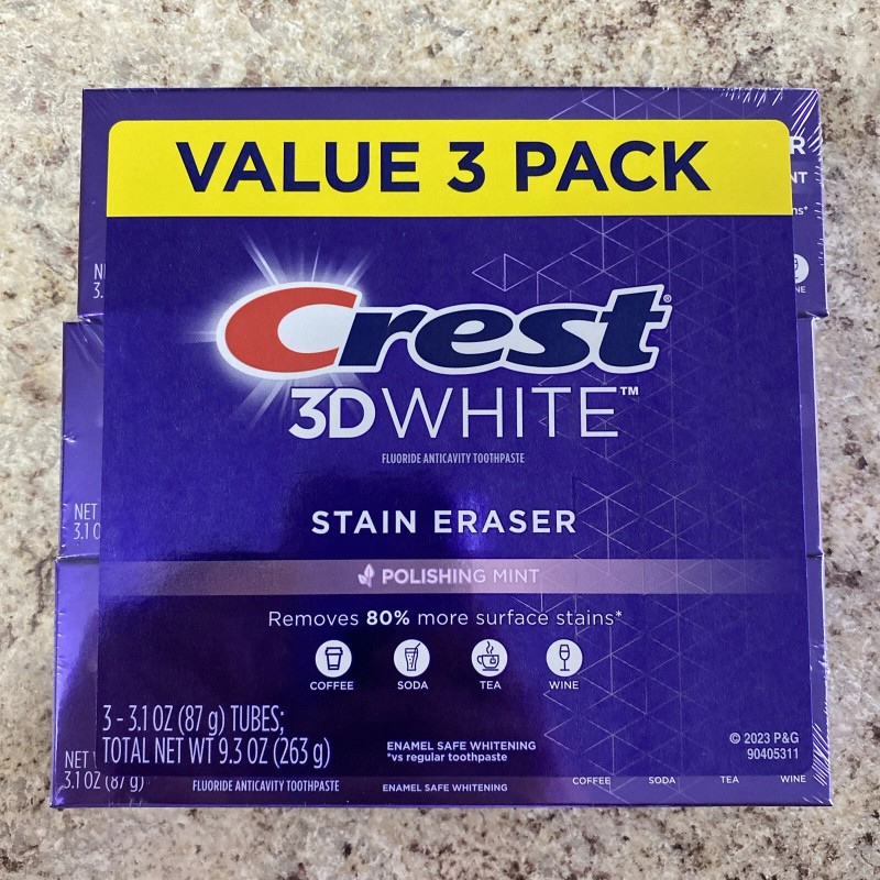 Crest 3D Stain Eraser Toothpaste, Polishing mint, 3.1 oz, 3 Pack 02/26
