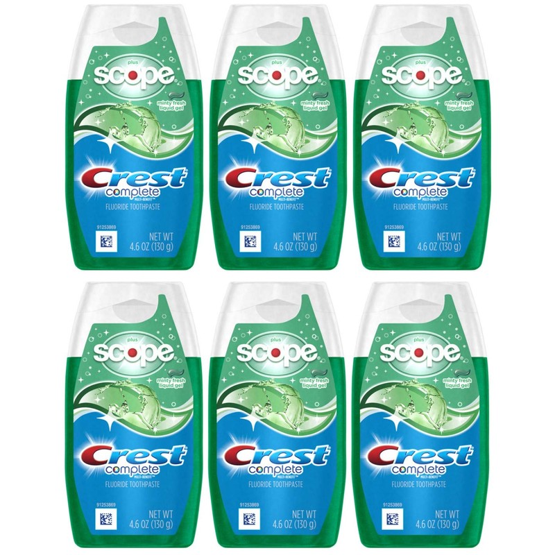 - You will receive (1) 4.6 oz tube of Crest Complete Plus Scope Minty Fresh Liquid Gel toothpaste
