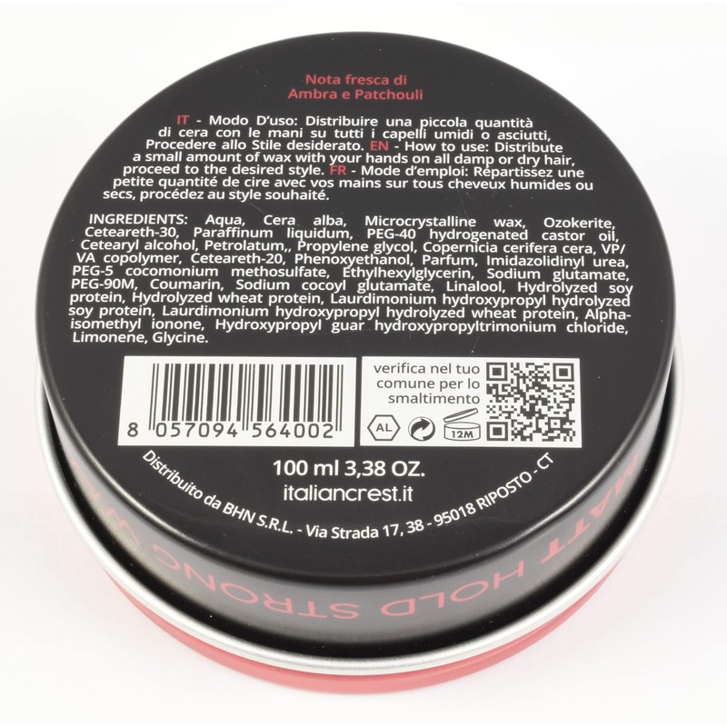 Crest Matt Hair Wax - Extra Strong Hold - Fresh Notes of Amber and Patchouli - 100 ml - Made in Italy