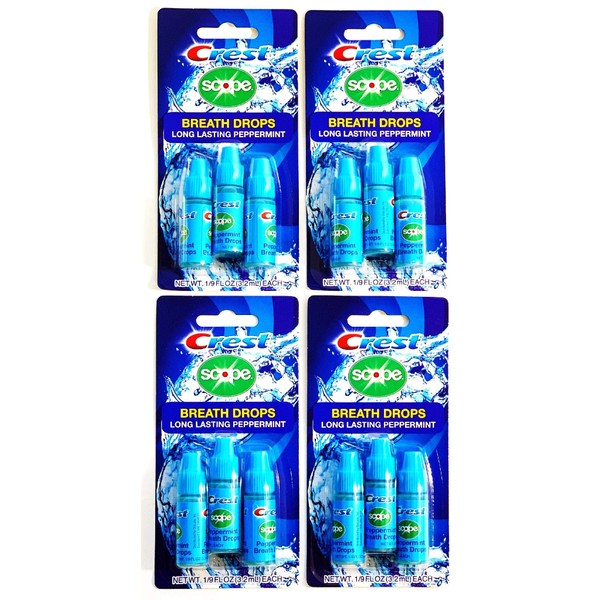 Crest Scope Breath Drops - Long Lasting Peppermint Liquid Breath Fresheners 12 Count
