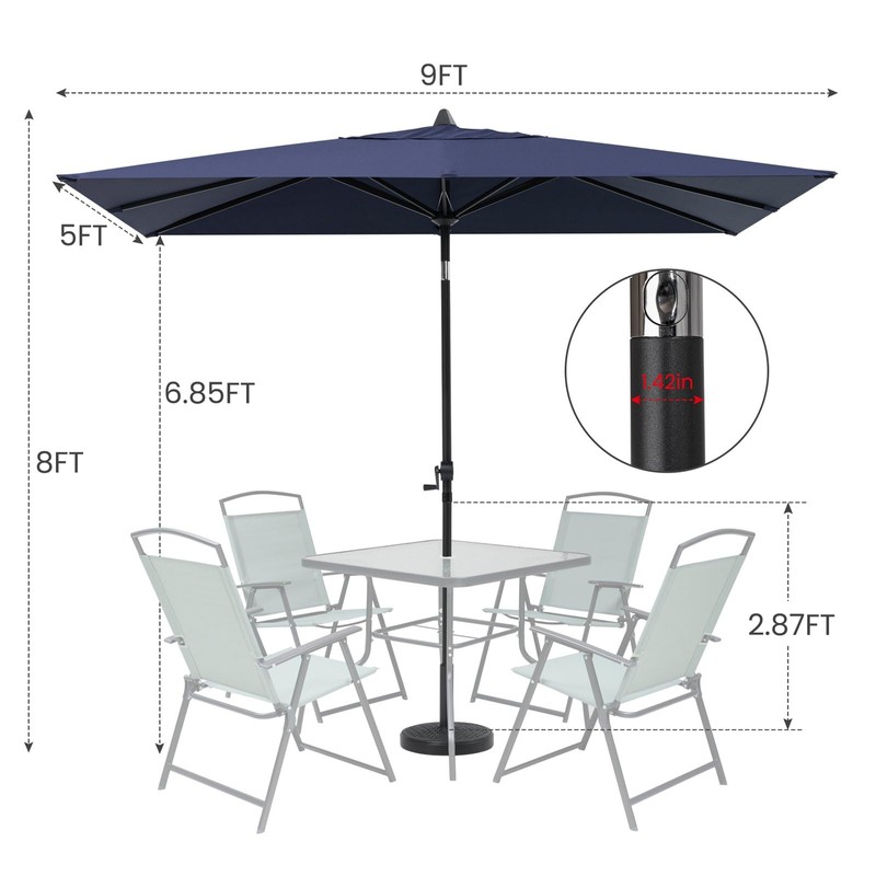 Crestlive Products 9 x 5 FT Patio Outdoor Umbrella, Market Table Umbrella, Rectangular Tilting Parasol, 500h Fade-resistant and Waterproof for Pool Garden Backyard (Navy Blue)