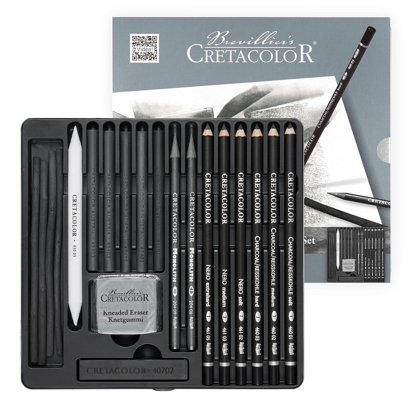 • Includes charcoal and greasy Nero pens, graphite monolith, charcoal, natural charcoal as well as paper wiper and kneading rubber