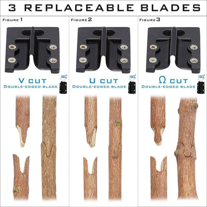 - Package: 1 x grafting scissors (with U-shaped blade); 2 x blades (V-shape and Ω shape)