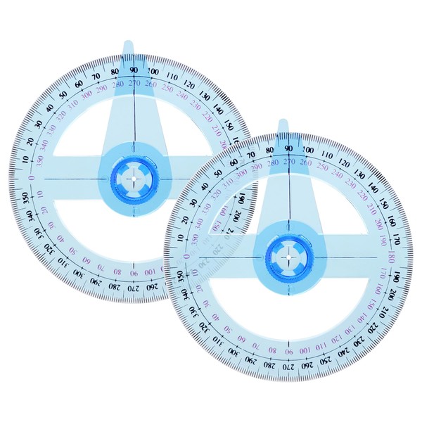 Cretty-Meet 2 PCS 360 Degree Swing Arm Protractor Plastic Circle Protractor Ruler for School Classroom Drafting Angle Measurement