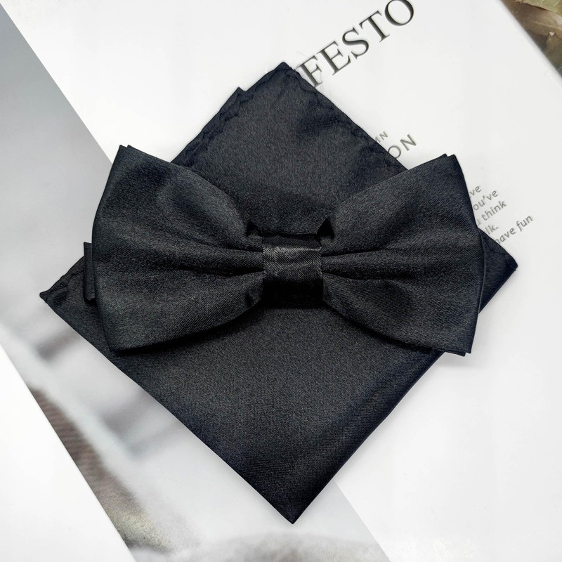 - Packaging: 1pcs black bowtie and handkerchief set men.