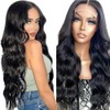 Creuost Real Hair Wig, Black Women, 4x1 Transparent Lace Front, 150% Density, Body Wave Wig, Brazilian Virgin Human Hair Wig, #1B Natural Colour Lace Front Wig, Human Hair for Women, 32 Inch (81 cm)