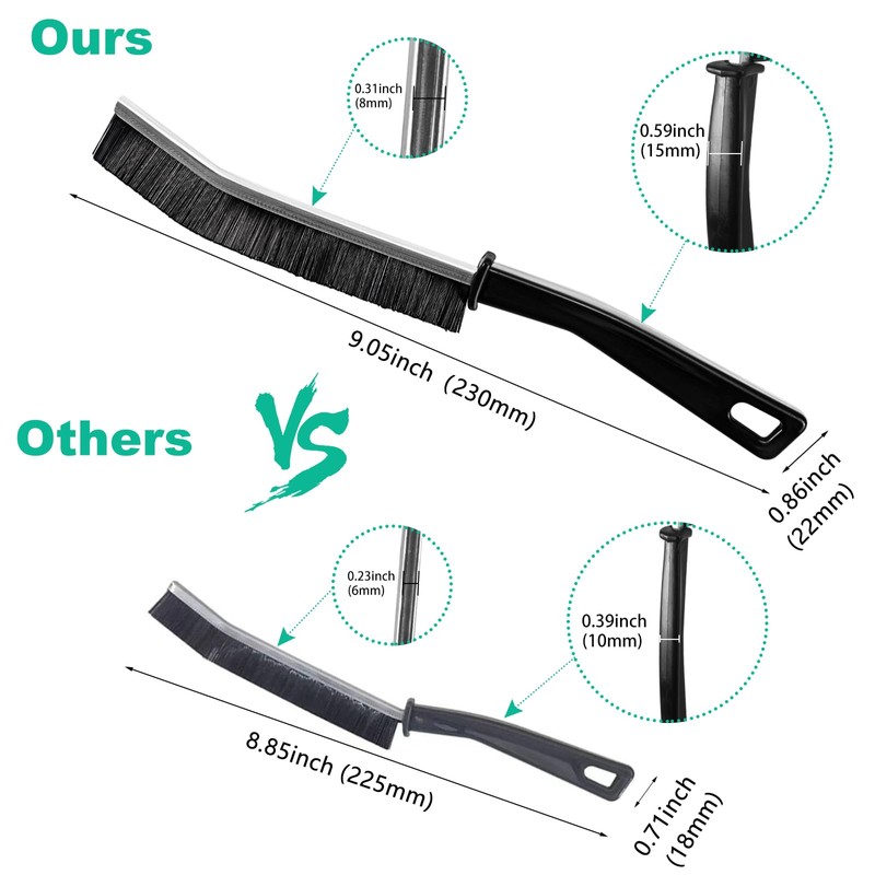 - 【New Durable Stainless Steel】: OKOMER's new improved crevice cleaning brush, Designed for longevity, has been changed from the original iron sheet brush handle to a stainless steel brush handle,More durable and long-lasting.this hard bristle crevice cleaning brush maintains its shape even through tough tasks, making it a reliable gap cleaning brush tool. It's particularly effective in small spaces and as a grout cleaning brush, ensuring durable performance in all cleaning situations.