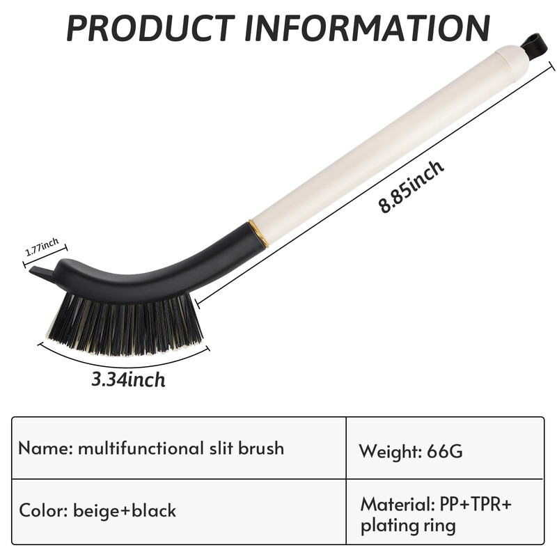 - ★ Multifunctional Crevice Cleaning Tool: The versatile crevice cleaning brush is made of both soft bristles and hard bristles, with a curved brush head to clean dead corners effectively. The PTR scoop at the front end is perfect for tackling stubborn stains. In addition, a hair clip is inserted inside the handle for added convenience, making it a 3-in-1 multifunctional cleaning brush.