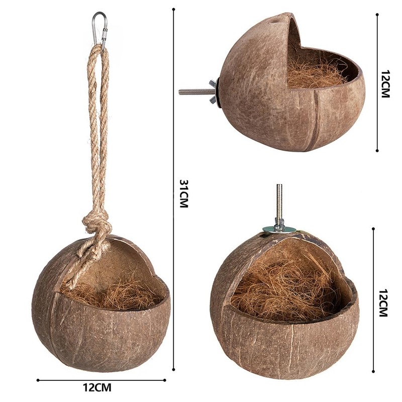 - NATURAL COIR MATERIAL Made from durable natural coconut shell, this bird house ensures long-lasting safety and resilience.