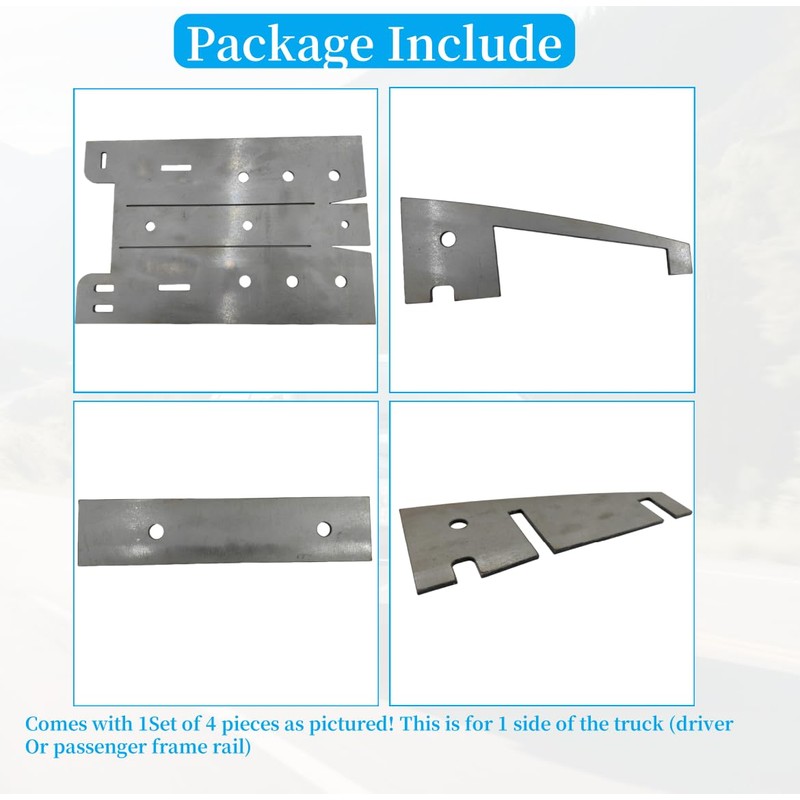 - Comes with 1Set of 4 pieces as pictured! This is for 1 side of the truck (driver Or passenger frame rail); One kit does one frame rail, to do both driver and passenger frame rails you will order two kits. Note: This will NOT fit crew cab long beds. Please see my other listings for that model