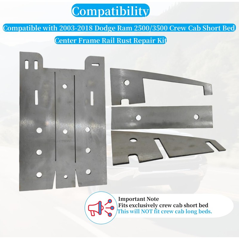 - Middle Frame Rail Rust Repair Application– Fit for 2003-2018 3rd Gen Dodge Ram 2500 3500 Crew Cab Short Bed trucks