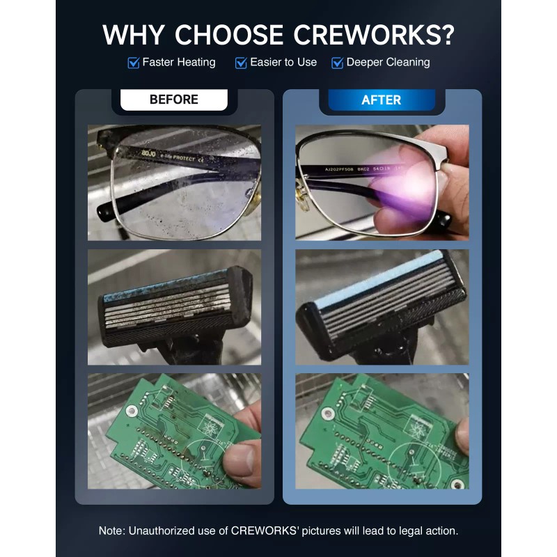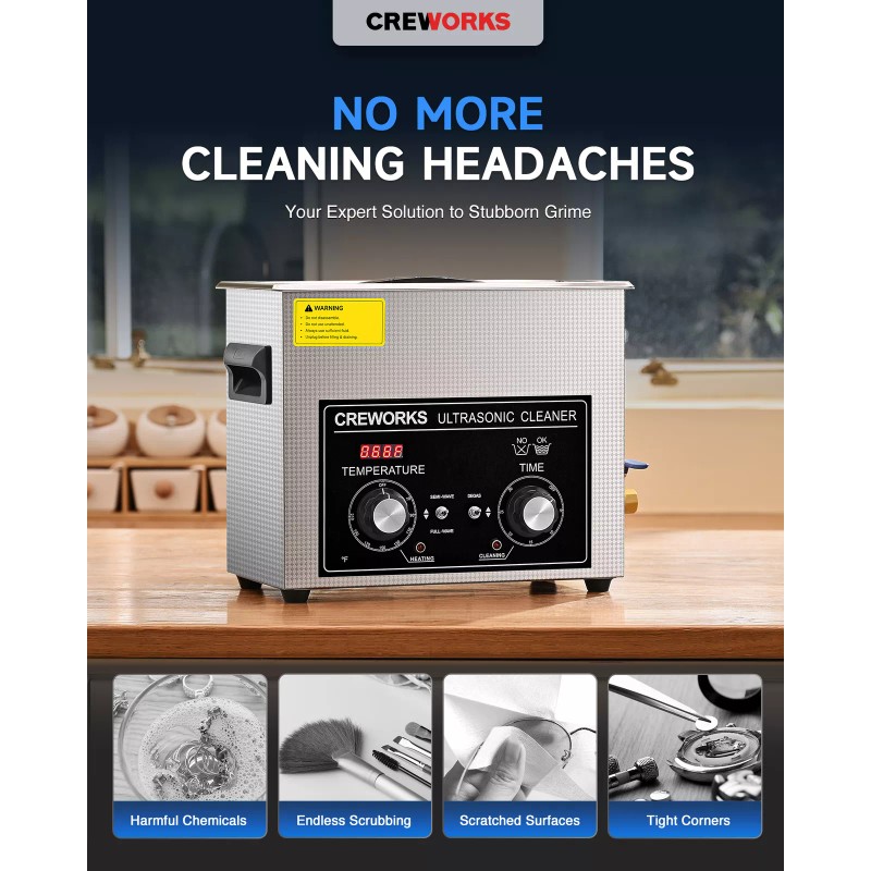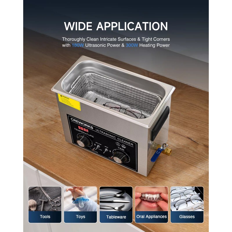 CREWORKS 6L Quiet Digital Ultrasonic Cleaner with Heater Timer & Degas Mode