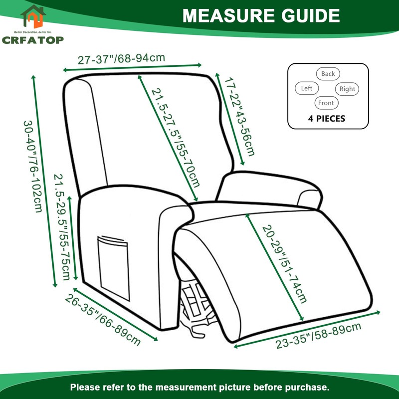 -- Pocket Design: CRFATOP recliner sofa cover has a pockets in right arm cover. You can put small items such as remote controls, mobile phones or any small items in your pocket.
