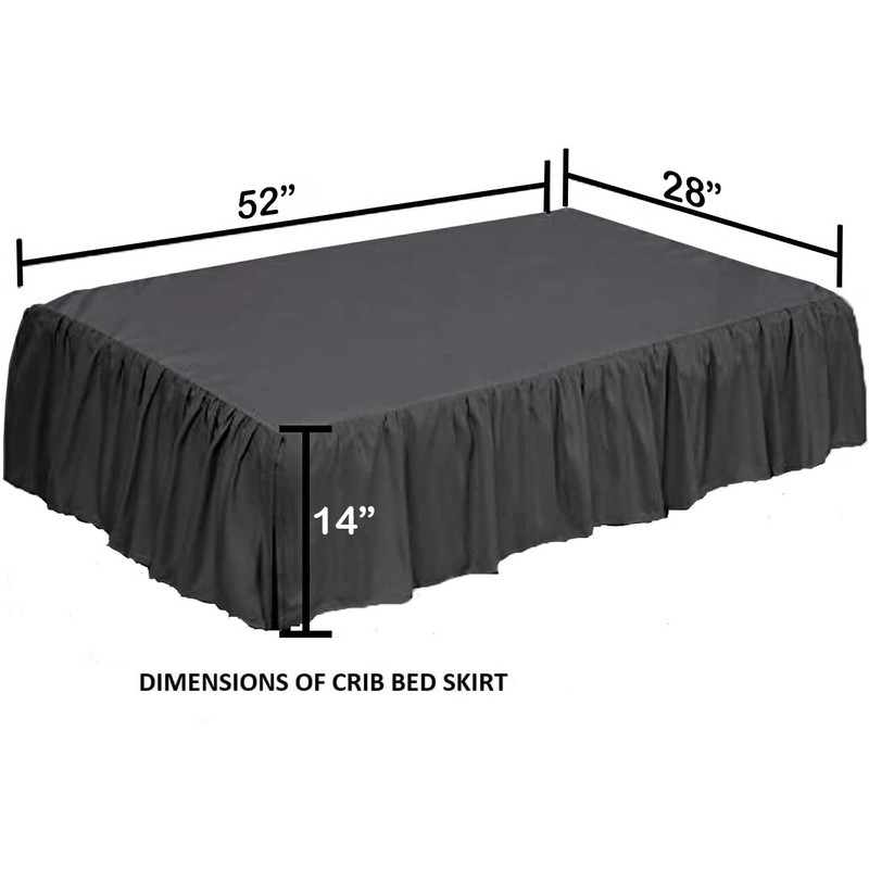 Crib Bed Skirt 28” x 52” with 14” Drop – Split Corners Dust Ruffle, Microfiber - Breathable, Durable, Elastic Adjustable Fit, Soft Nursery Bedding for Baby Boys & Girls, Dark Grey Solid