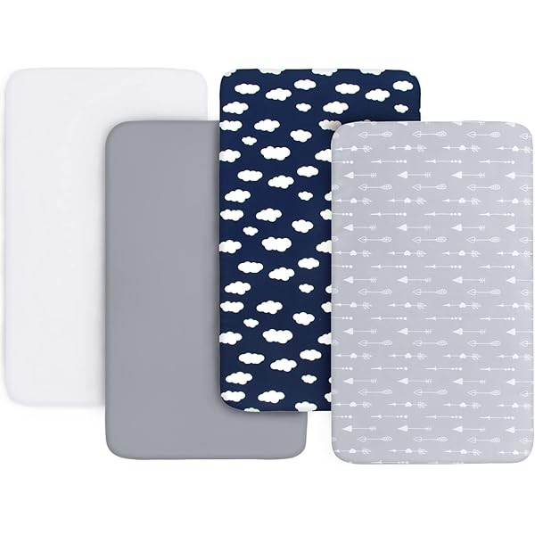 Crib Sheets for Boys and Girls Fitted 4 Pack - Breathable, Soft Microfiber Baby Sheets in Grey, Navy and White