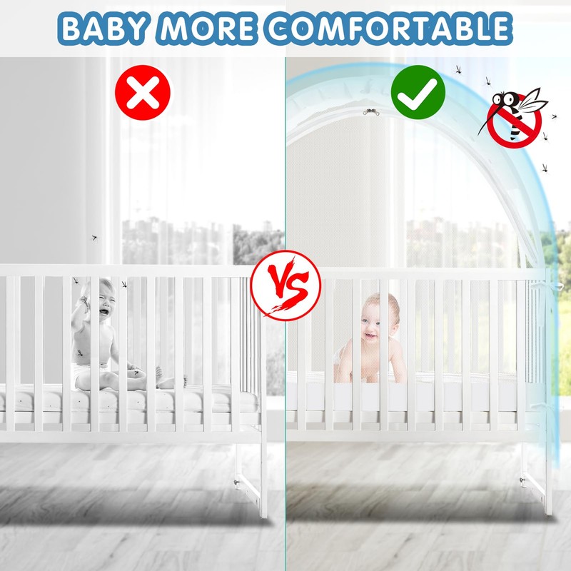 - COMPREHENSIVE PROTECTION OF BABY'S SAFETY: This crib canopy with full coverage not only prevents your baby from climbing out of the cot, falling, and getting his limbs caught by the rails, but also baby tent prevents unwanted guests from entering and biting your baby, so that your baby can be safe and secure in the crib.