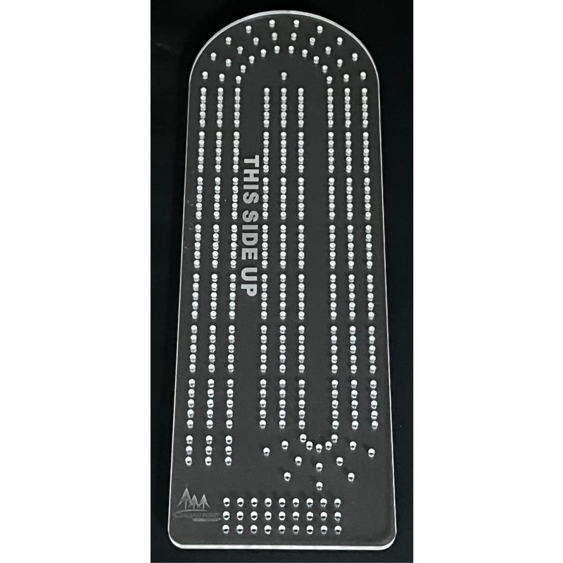 - SIZE: Each template measures approximately 14.75”L x 5”W. Use the thick acrylic template as a router guide to finish off the shape of your cribbage board. The large top radius is concentric with the adjacent peg hole arcs. Smaller bottom radii help create a clean, finished look to the bottom corners.