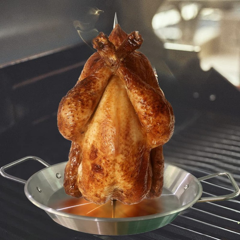 - No more additional drip pan required: Our bowl-like stand that catches all the amazing juices created during the cooking process and prevents the juices of food from flowing into the oven or fire.