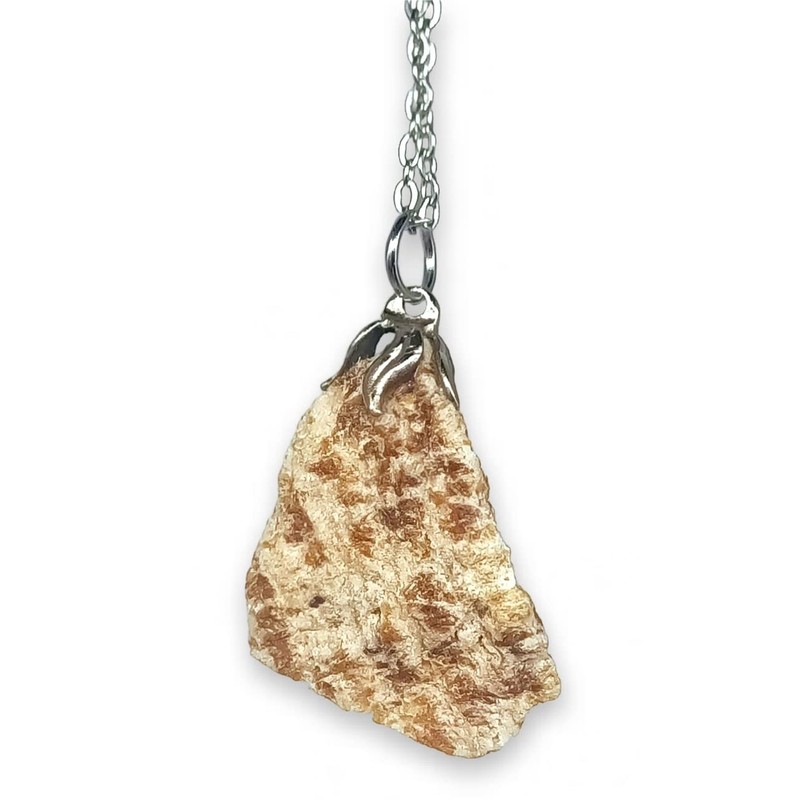 CRIGEMA - Pendant Necklace Minerals Semi-Precious Stones Jewellery Handmade, Stainless Steel, Aragonite, aragonite
