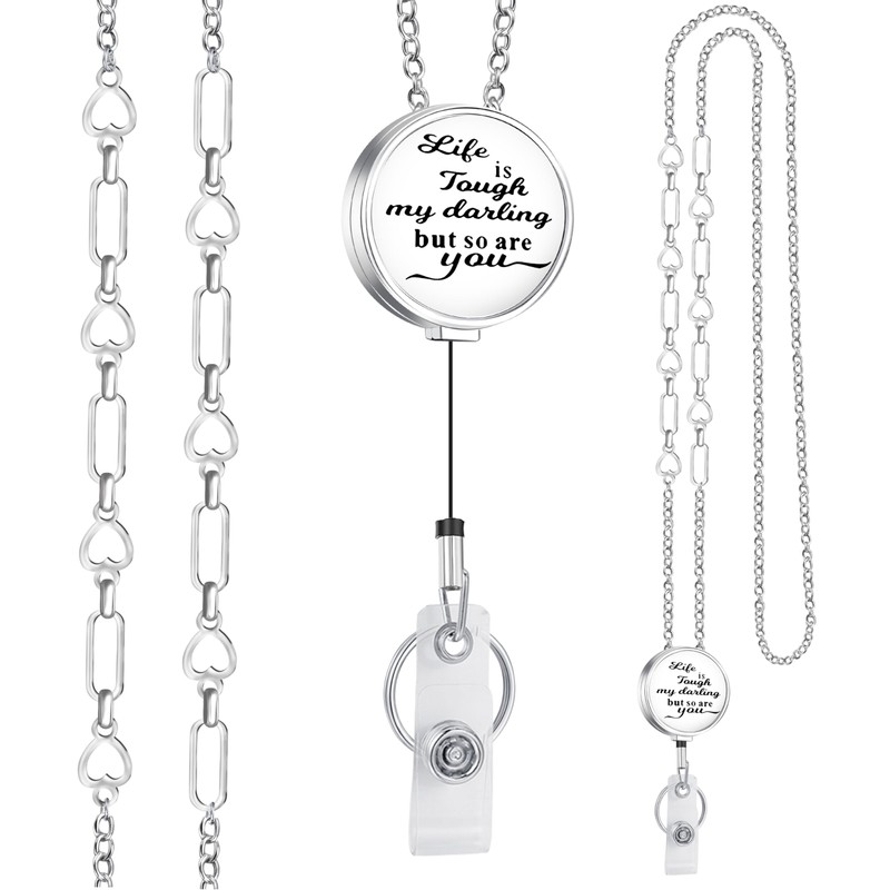 Crimmy Retractable Lanyards for ID Badges and Keys for Women, Teachers, Cute Necklace Lanyard Badge Holder, Inspirational Silver Chain Lanyards (Life reel)