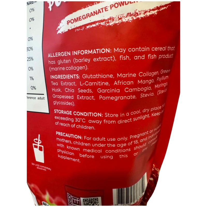 Cris Cosmetics Pomegranate Powder Drink Mix with Glutathione & Collagen (20g x 10 Sachets)