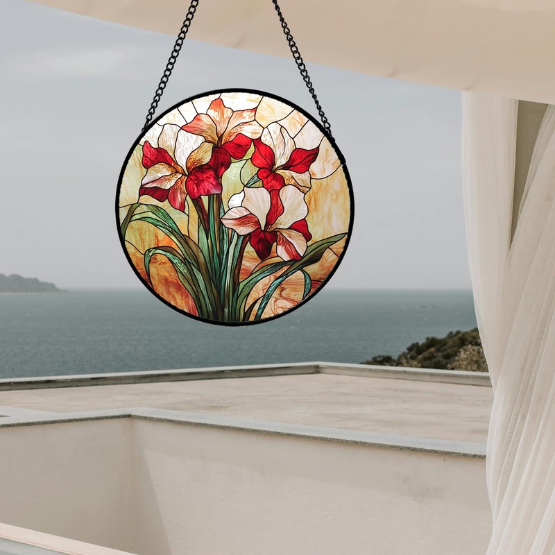 CRISGIF Stained Glass Window Hanging - Red Gladiolus Flower Suncatcher for Door Yard Sun Catchers Decor Christmas Mother's Day Birthday Gifts for Lovers Women Mom Nana Girlfriend Wife 11.8 in