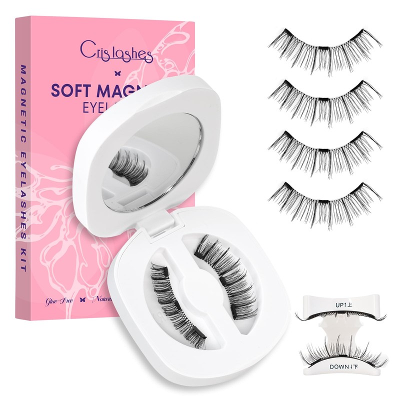 Crislashes Magnetic Eyelashes, Magnetic Lashes with Applicator, Reusable Wispy 3D Eyelashes Without Eyeliner, No Glue Needed Wispy 3D Lashes Natural Look, Easy to Use and Remove (Soft A)