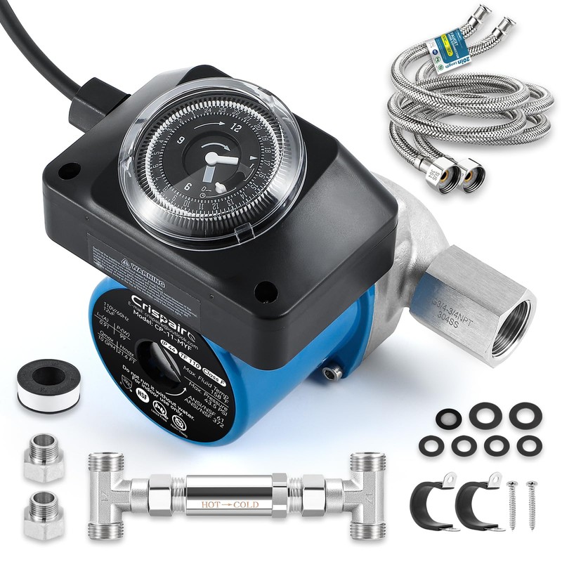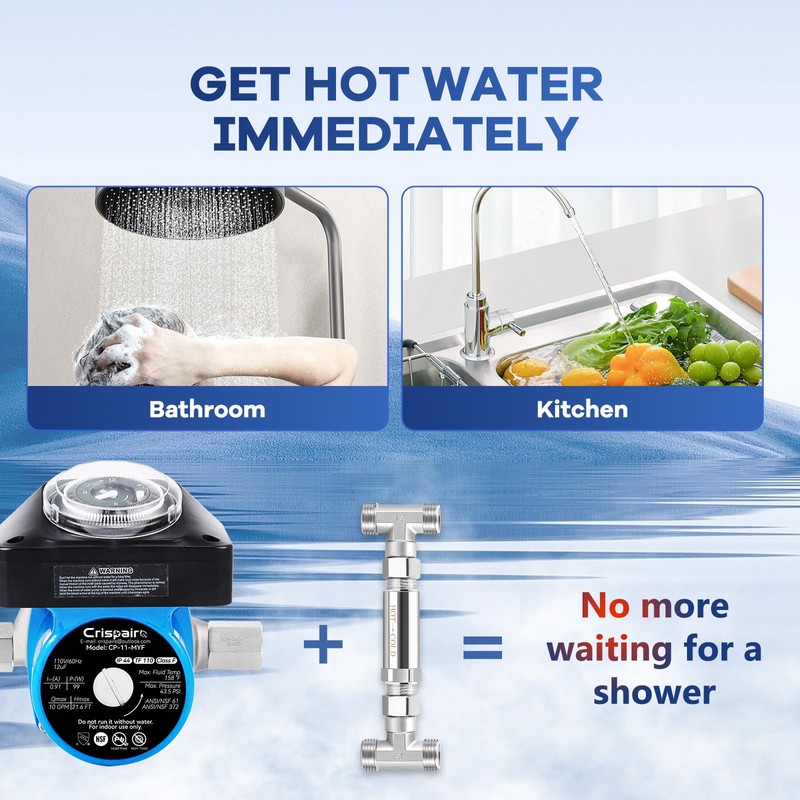 Crispaire Instant Hot Water Recirculating Pump Kit - Effortless Install, Durable 304 Stainless Steel Sensor Valve, 20-Inch Safe PEX Supply Lines, Smart Timer for On-Demand Hot Water | Crispaire