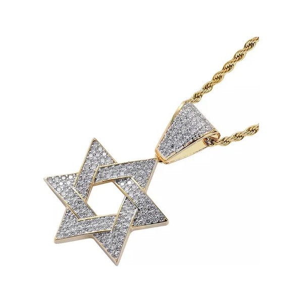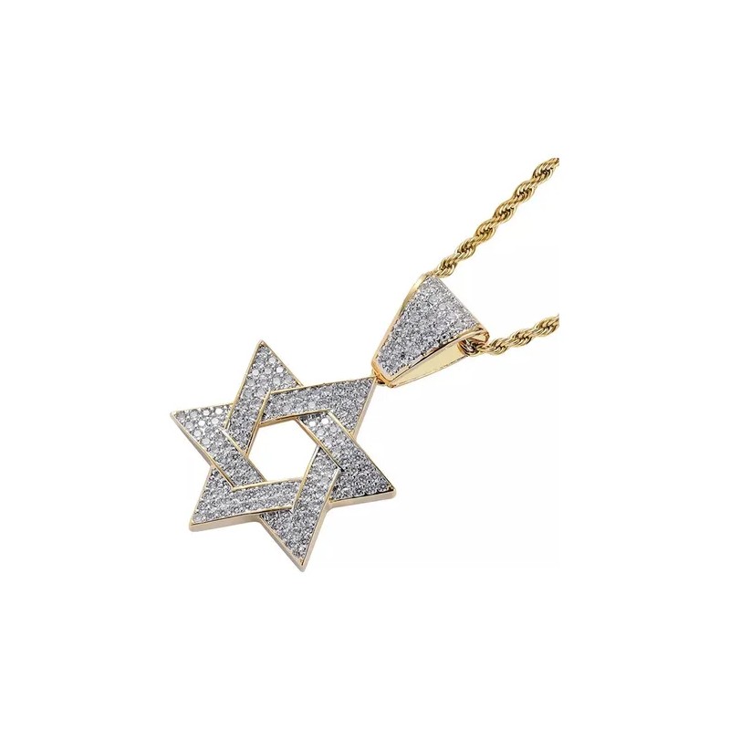 colgante de seis estrellas de Hip Hop con incrustaciones de circonitas de 18 quilates, llamativo que nunca se decolora,