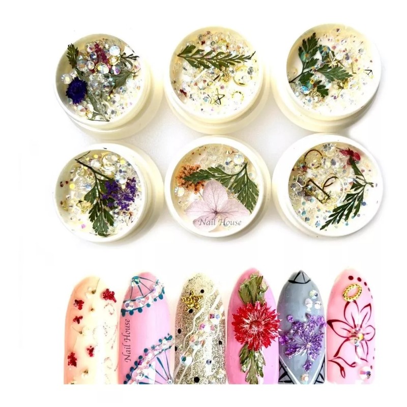 Cristales Figuras Doradas Y Naturaleza Muerta Decoracion Uña