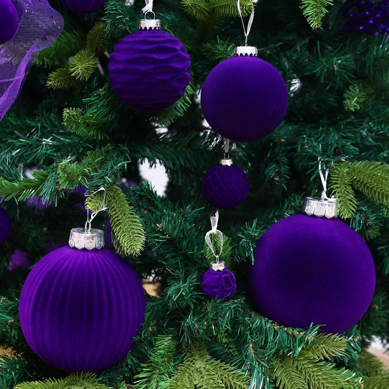 - 【VELVET CHRISTMAS ORNAMENTS】These Christmas tree ornaments are made of high quality plastic and velvet material. Velvet Christmas ornaments balls are perfect for hanging on your Xmas tree and decorating your home with them, this will become part of your vacation.