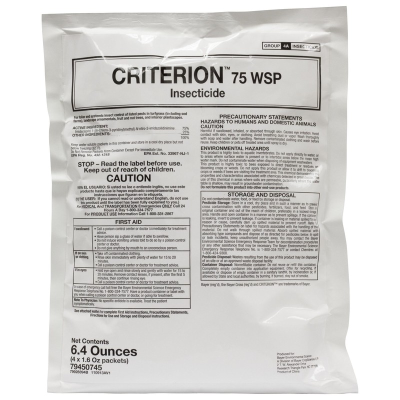 Outstanding preventive and curative control Long residual activity Usage rates up to 96% lower than many registered soil insecticides Criterion 75 WSP is the generic version of Merit 75 WSP and is even made by Bayer who also makes Merit. Criterion 75 WSP provides the industry's longest-lasting grub control at exceptionally low use rates.