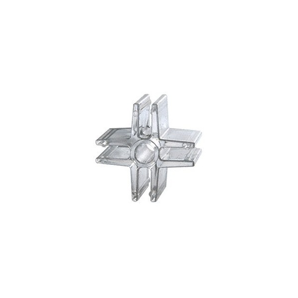 Create beautiful and functional glass display units with CRL Plastic Display Connectors that give retail stores or rooms a feeling of spaciousness. Four- Way 90 Degree Connectors are used for connecting four lites at 90 degree angles on display cubes. These clear plastic connectors hold 3/16 inch (5 millimeter) glass or mirror in an unlimited variety of configurations giving you design freedom to arrange and rearrange as you desire. Clear Plastic Display Connectors are easy to use. They go on simply with a tap of a soft- face mallet over 3/16 inch (5 millimeter) glass. Lay out cut glass panels, start from the base and work up. The full assembly can be up in minutes.