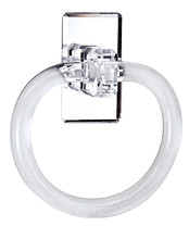 Made of tough clear acrylic, this CRL Acrylic Mirror Towel Ring is mounted to a clear acrylic mirror base. The base has beveled edges and an adhesive backing. Installation is simple, just peel and stick to the surface.