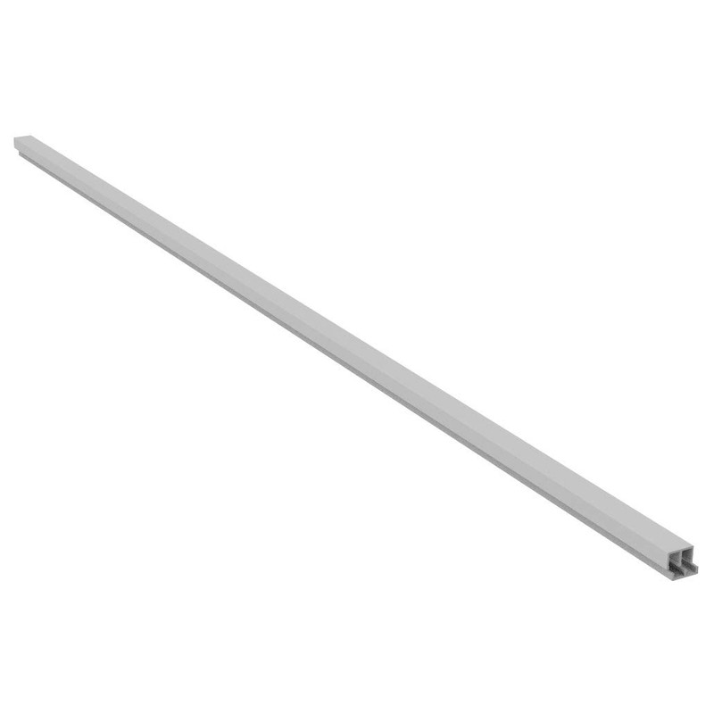Light gray, high impact polystyrene Plastic Track Assembly for 1/2" (12 mm) thick small or light doors. Four nylon button glides provide a smooth gliding action. Available in 72" (1.83 m) stock lengths.
