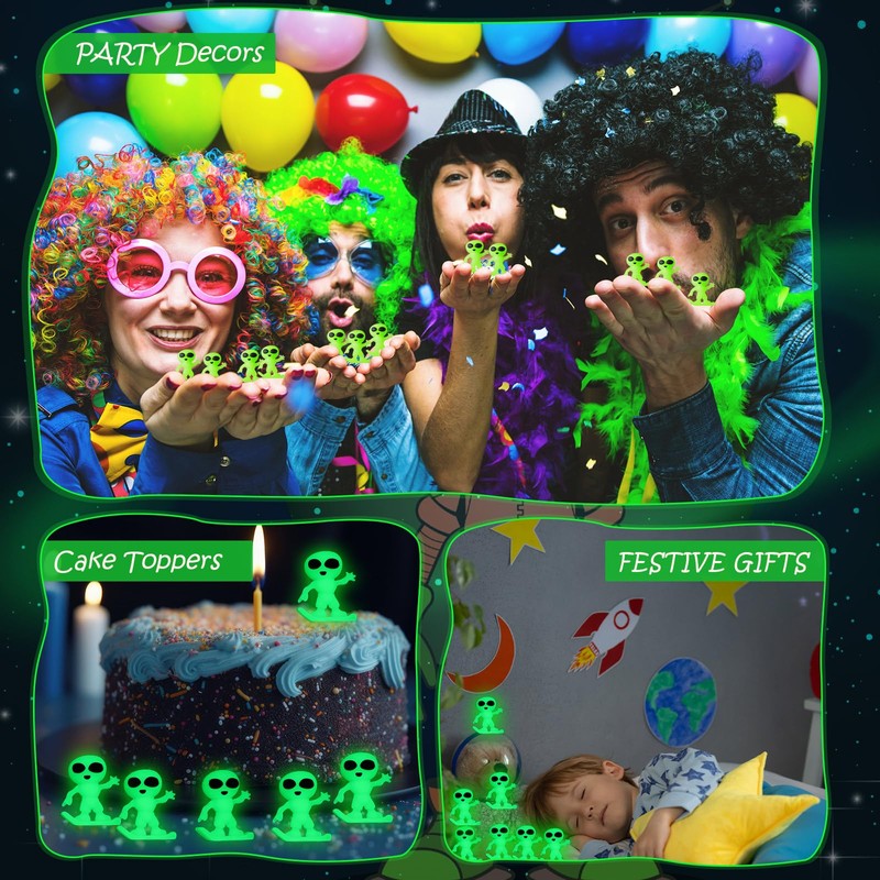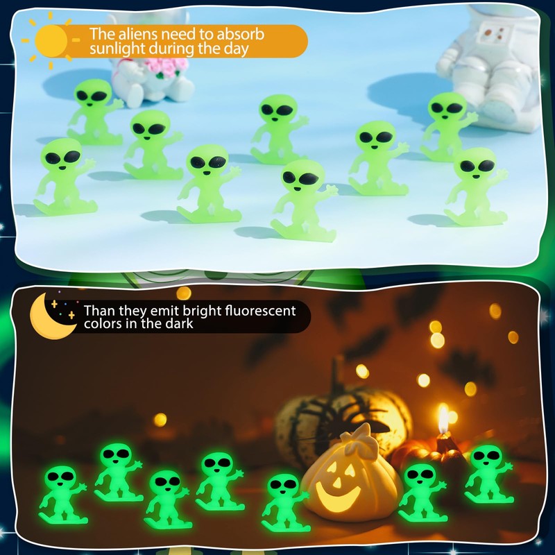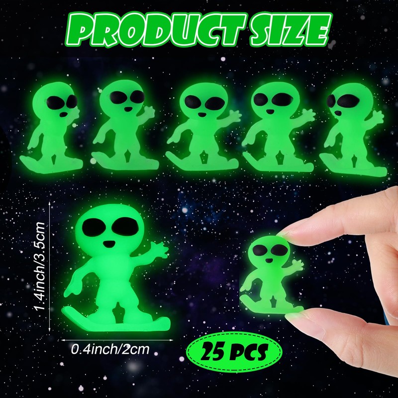 - Value package: Each set contains 25 fluorescent green glowing alien ornaments, with a size of approximately 3.5*2cm. The quantity is sufficient to easily meet the decoration needs of parties, Halloween or alien-themed activities! Whether it is designed to decorate the table, hang decorations, or distribute as interactive props, this combination can instantly make your event atmosphere full, and it is very cost-effective