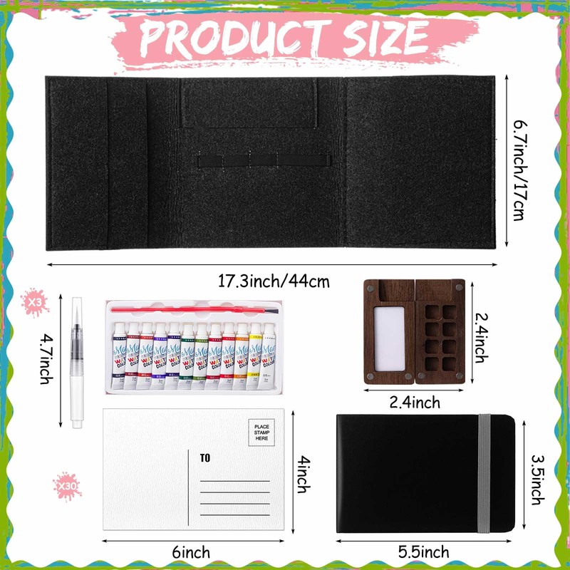 CroBlissful Travel Watercolor Set Include 30 Blank Postcards, 1 Paint Palette, 1 Sketchbook, 1 Portable Folding Felt Bag, 3 Watercolor Pens, 4 Clips, Paint, Painting Kit for Adults, Beginners, Artists