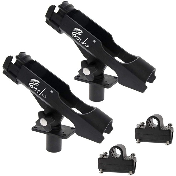 Croch 2 Pcs Adjustable Fishing Rod Holder for Boat and Kayak, Plastic, Black, Deck Mount