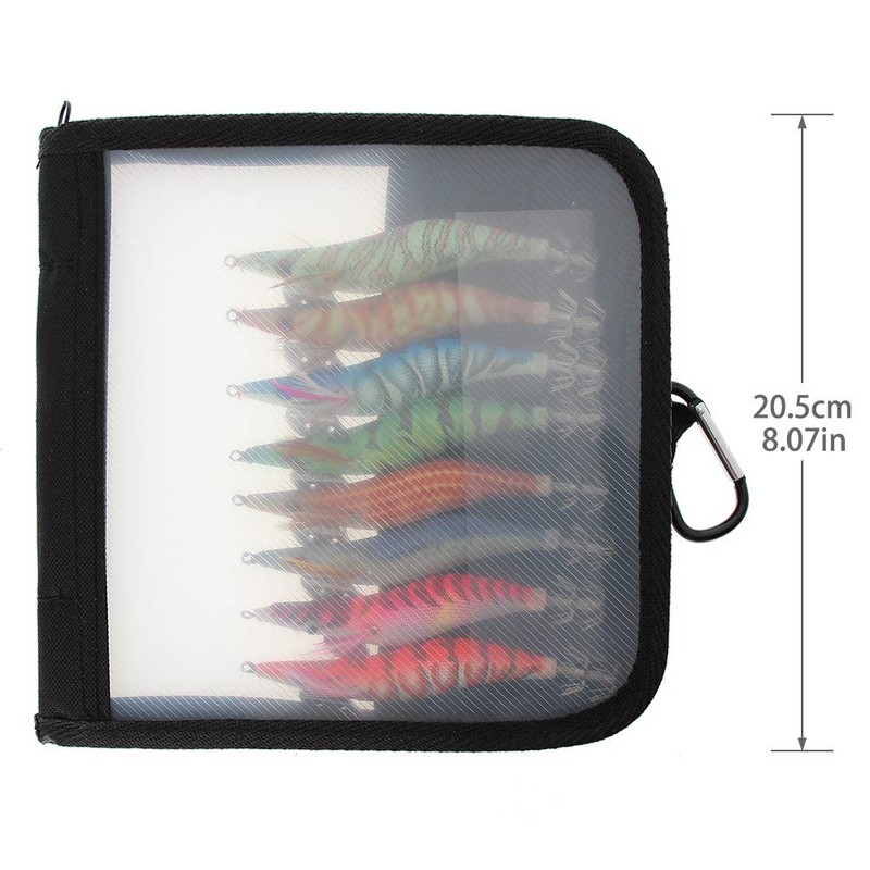 • Package Contents: There are 4 types of squid jigs: 2.5 #, 3.0 #, 3.5 #, 4.0 #, Each model contains 8 colored shrimp baits, packed in translucent bags.