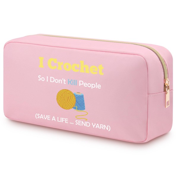 - Knitting Lovers Gifts: Our crocheting gifts makeup bag is perfect for crocheters who love their craft, featuring inspiring phrases such as "I Crochet So I Don't Kill People SAVE A LIFE ... SEND YARN" printed on it. Awesome gifts for all lovers of knitting, crocheting, and quilting, perfect for knitters and crocheters.