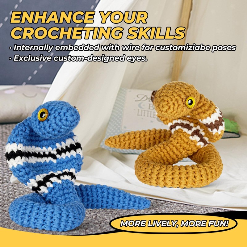 Crochet Kit for Beginners Animal,Crochet Animal Kits,Crocheting Kit for Starters,Learn to Crochet with Step-by-Step Video Tutorials,Beginner Crochet Kits for Adults,Knitting Kits(2pack Cobra)