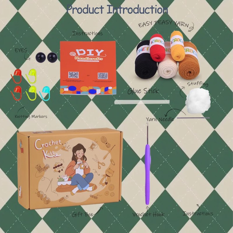 - Crochet Kit for Beginners:This crochet kit for beginners animals with all the accessories you need. Learn to Crochet Starter Kit is perfect for beginners,It's easily get started.It includes a complete set of crochet tool,as well as a variety of colorful yarns and fabrics.