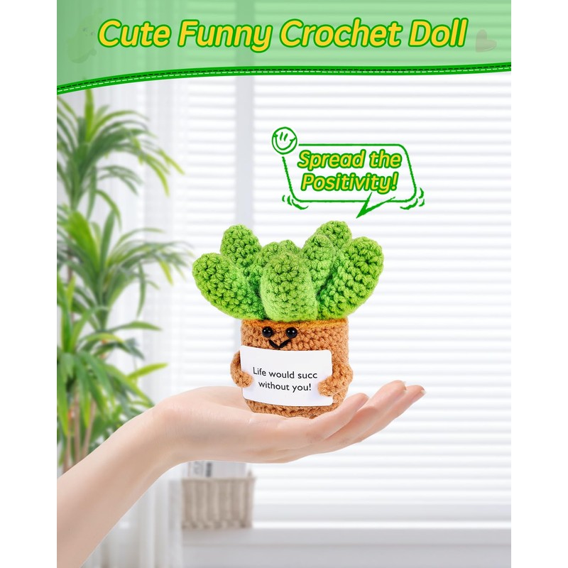 - Mini Funny Succulent Plant Doll: This knitted doll is a cute and quirky companion that will bring smiles and positivity to your day. It comes with a special positive card to cheer up your friends and loved ones in a unique way