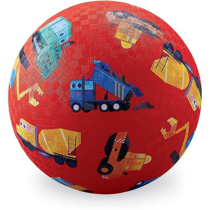 Crocodile Creek Playground Ball - Durable Rubber Ball for Kids Ages 3 and Up, Bouncy Inflatable Ball for Kickball, Indoor and Outdoor, PVC-Free - Little Builder Construction Vehicles - 7-inch Diameter